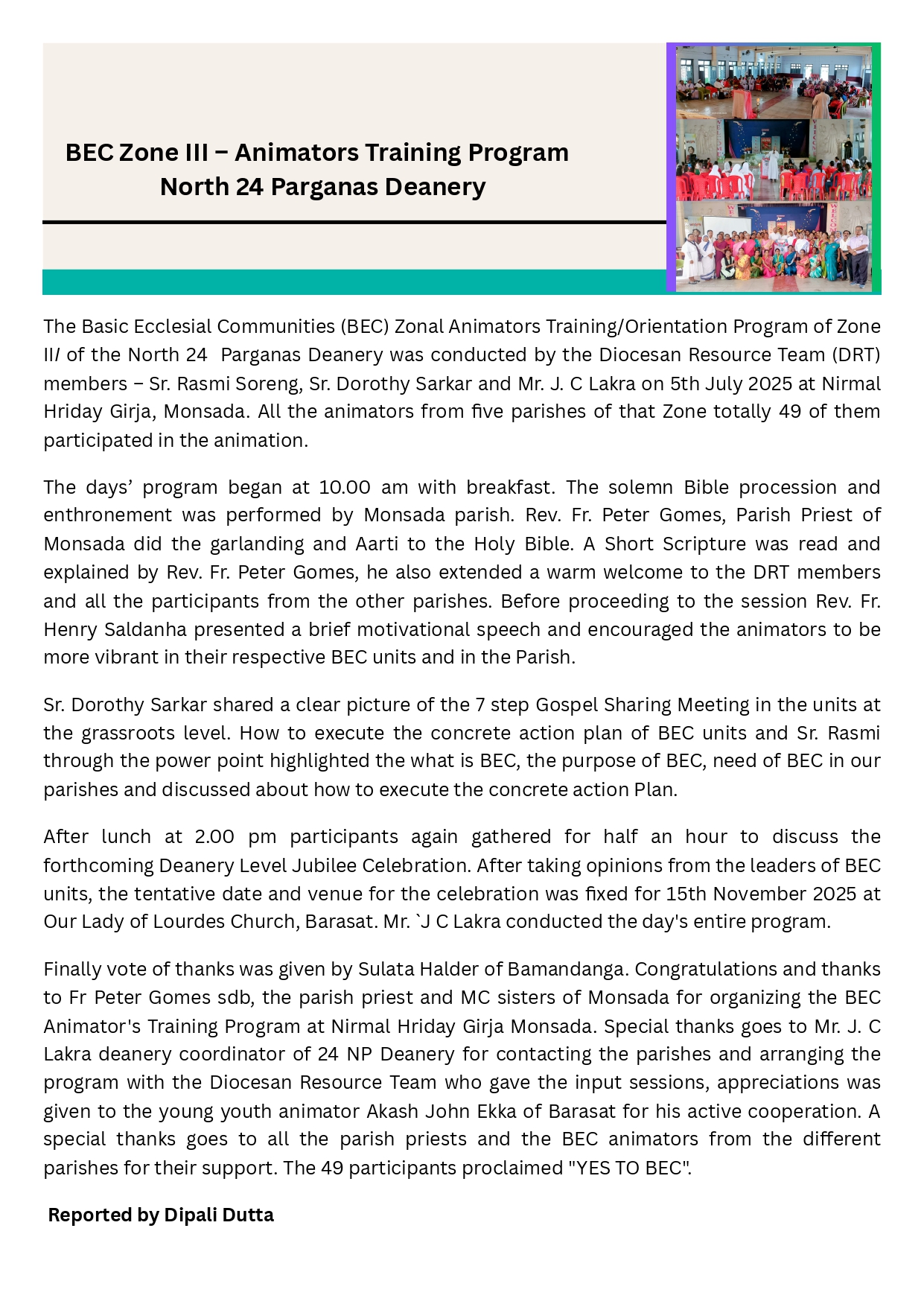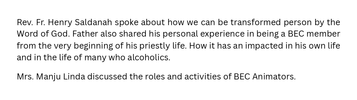 Basic Ecclesial Communities [BEC] / Small Christian Communities [SCC] in Calcutta Archdiocese