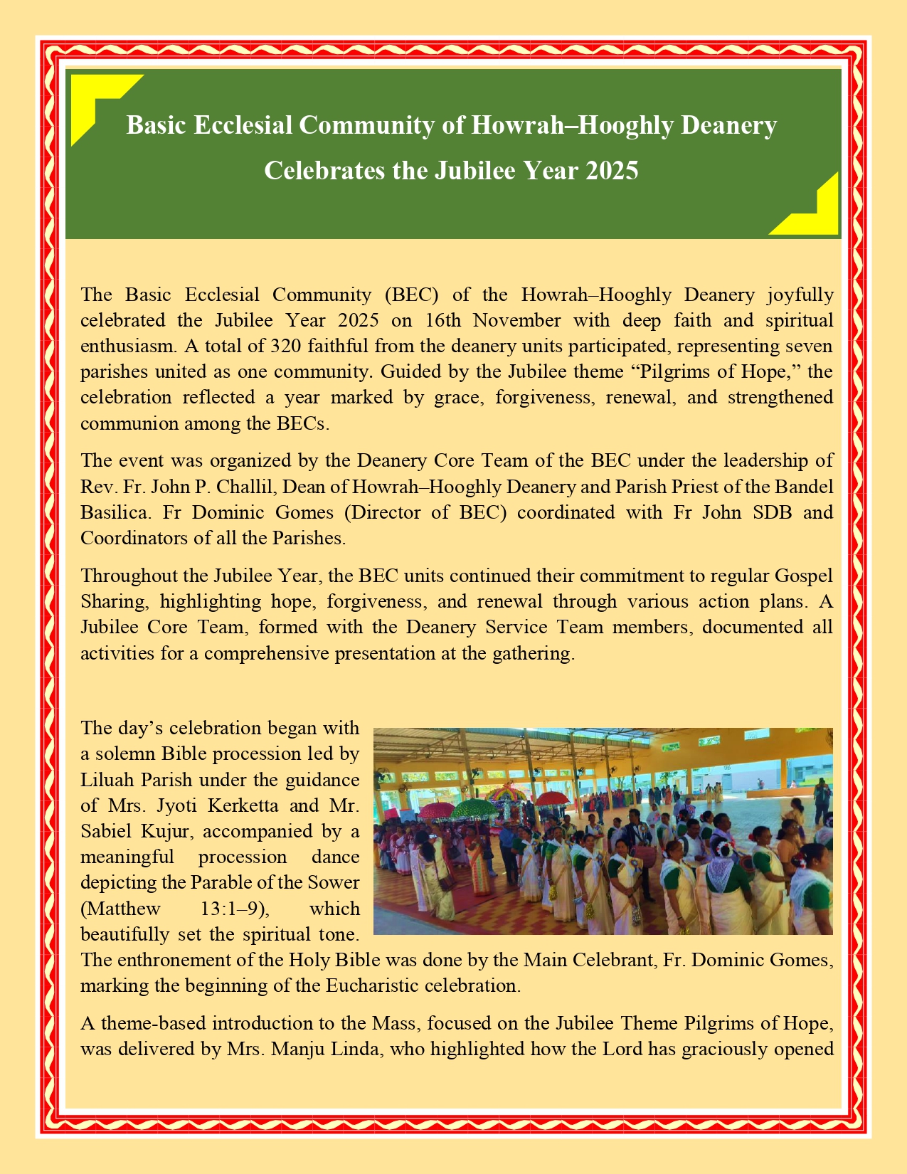Basic Ecclesial Communities [BEC] / Small Christian Communities [SCC] in Calcutta Archdiocese