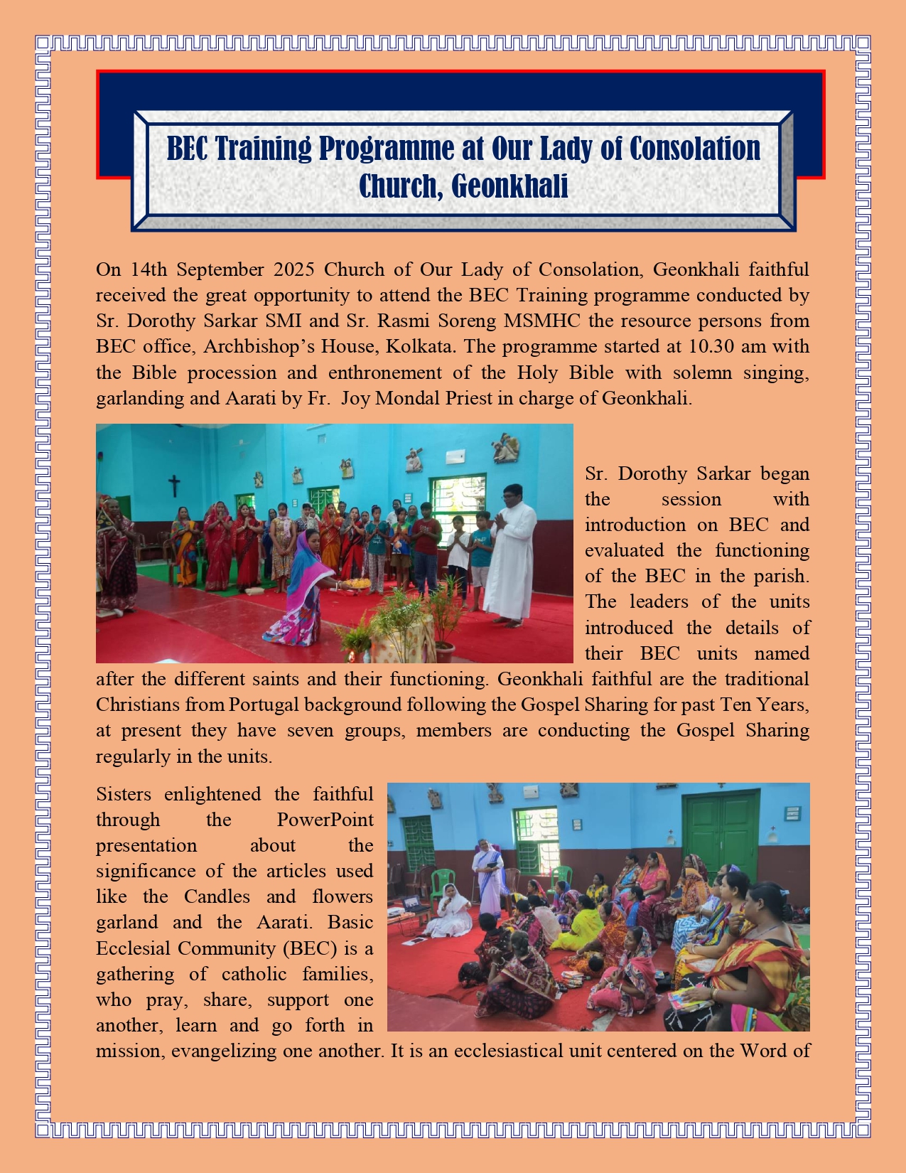 Basic Ecclesial Communities [BEC] / Small Christian Communities [SCC] in Calcutta Archdiocese